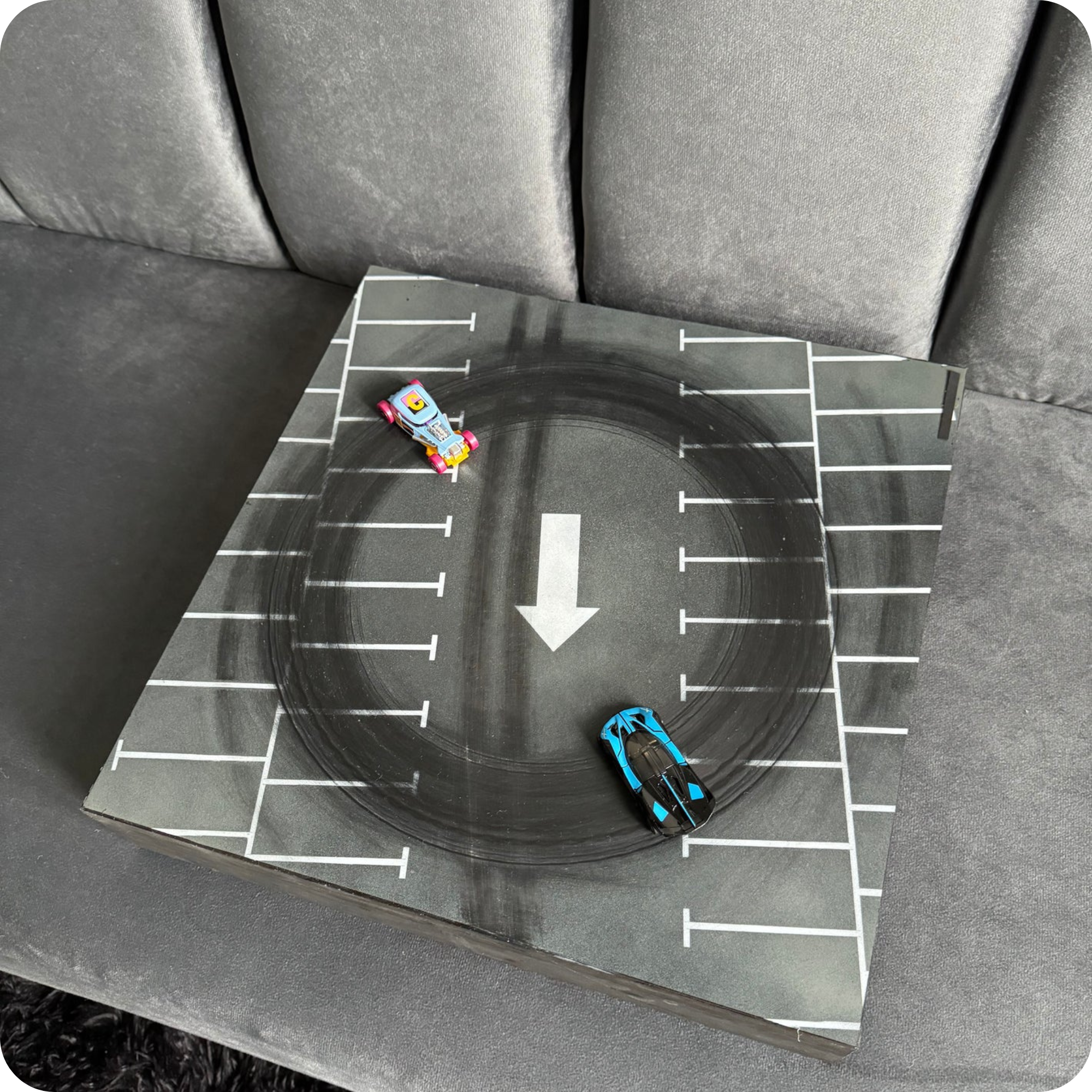 Simply plug it into a power outlet. Once turned on, the internal magnetic system activates and your car begins drifting smoothly across the track.